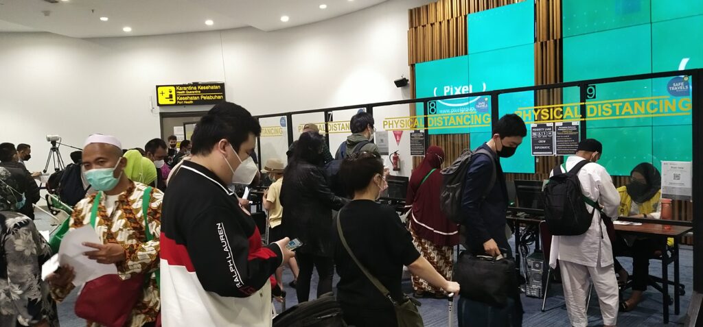 5A. アプリPeduliLindugiで既にワクチン接種証明書登録済みで緑ステータスの方は、QRチェックインのみで、イミグレカウンターへ。筆者のケースではPCR陰性証明書の確認はされなかった。